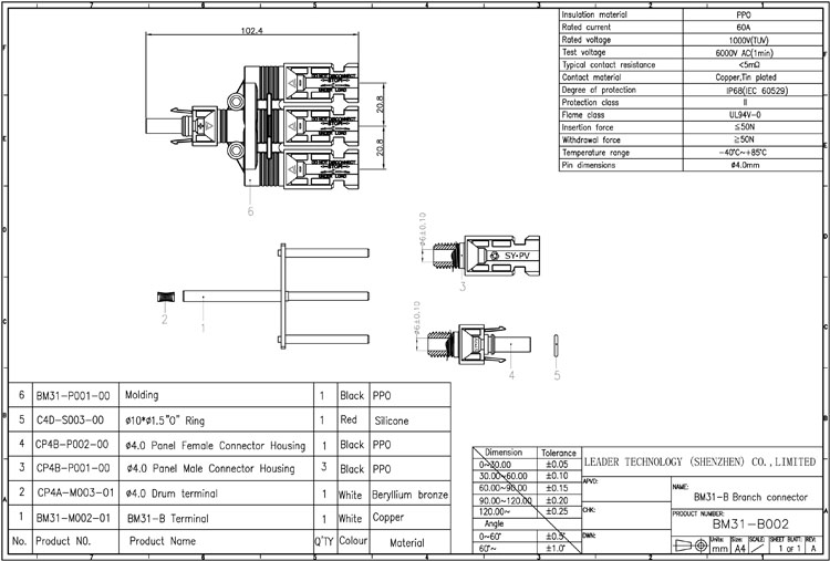 LEADER GROUP (SYSOLAR® es la marca registrada) es el fabricante líder de enchufes solares MC4 en China durante 15 años. Uso para una conexión en serie segura y simple de módulos solares fotovoltaicos, Certificación con el estándar TUV / UL, Se adapta a cables solares fotovoltaicos Ø2.5-Ø10MM². Tecnología MultiContact probada con alta estabilidad a largo plazo, soporte perfecto para el funcionamiento a largo plazo de sistemas fotovoltaicos.